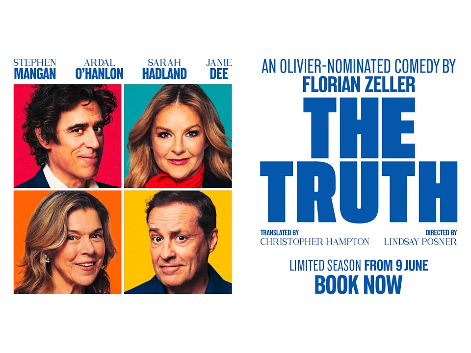 Starring Tony Award-nominated Stephen Mangan returning to the London stage, alongside comedy icon Ardal O’Hanlon (Father Ted, My Hero), Sarah Hadland (Miranda, The Job Lot), and double Olivier Award-winner Janie Dee, The Truth runs in the West End for a strictly limited 14-week season.